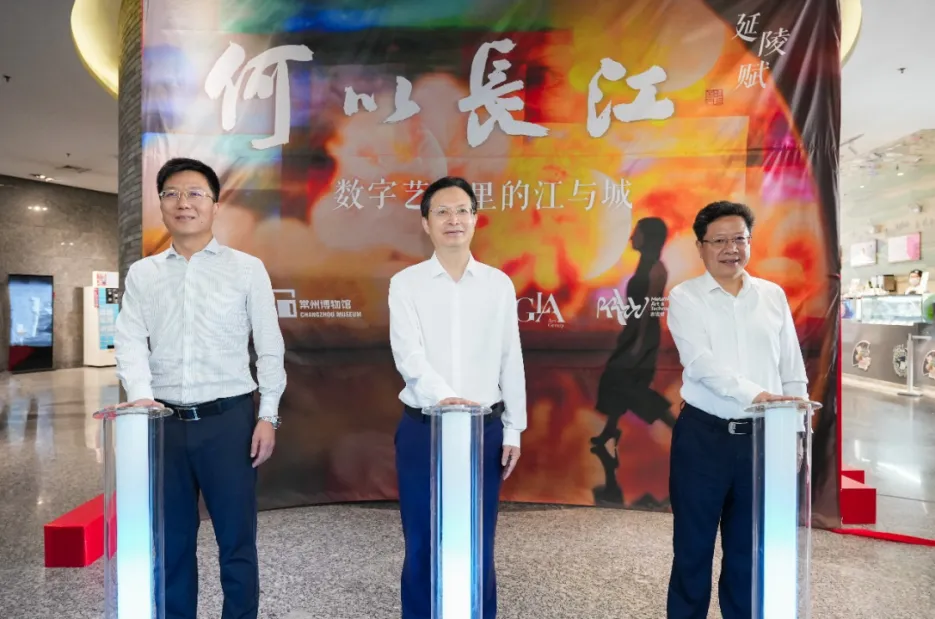 9月19日,“何以長江?延陵賦——數(shù)字藝術(shù)里的江與城”正式在常州博物館一樓特展廳啟幕。本次數(shù)字展由中共常州市委宣傳部、常州市文化廣電和旅游局主辦,常州博物館、江蘇有線數(shù)據(jù)公司、江蘇有線常州分公司等單位承辦。江蘇有線黨委書記、董事長莊傳偉,黨委副書記、總經(jīng)理?xiàng)钋喾澹V菔形N?、宣傳部部長陳志良,江蘇有線黨委委員、總會計師王展,黨委委員、副總經(jīng)理施茜出席啟動儀式。